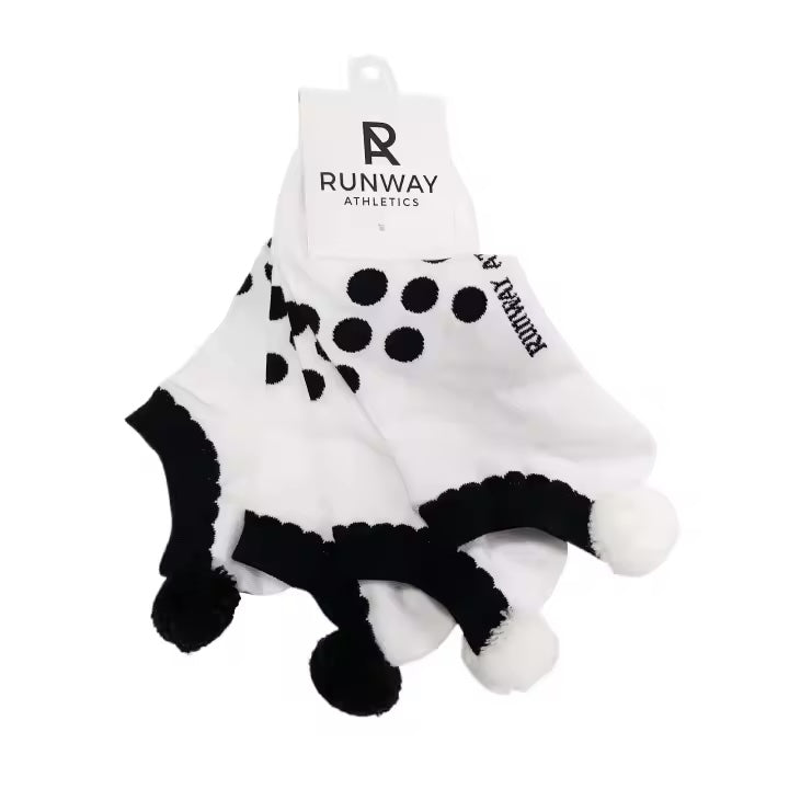 Whether you're on the court, hitting the course, or just adding a little fun to your everyday look, our cotton spandex pom-pom socks are the perfect blend of style and comfort. Featuring a bold, playful design with a pair of black pom-pom socks and a pair of white pom-pom socks, this set will elevate your athletic and casual outfits alike.