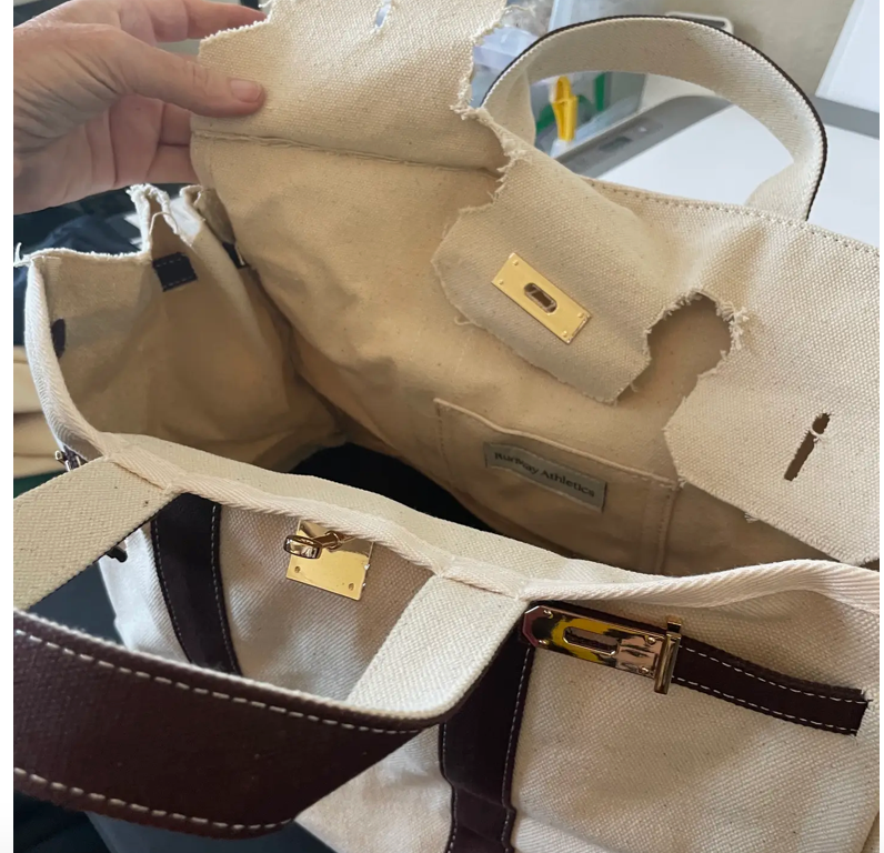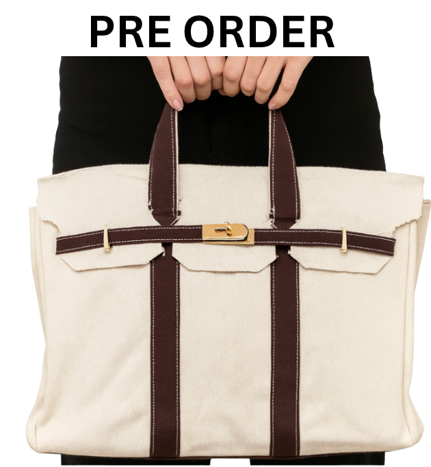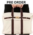 Combo of casual canvas and a Birkin design, resulting in a cheeky, "quiet luxury with a smirk" aesthetic. These bags are made to have imperfections and unfinished seams, and were featured in The New York Times as the "IT BAG!"