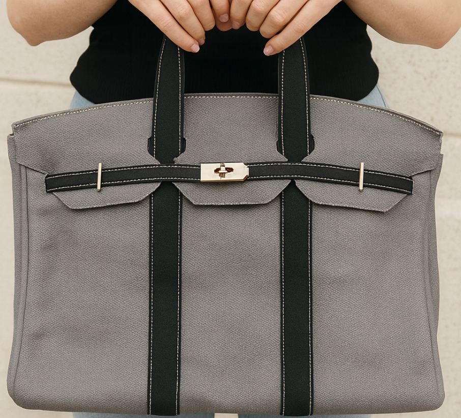 Combo of casual canvas and a Birkin design, resulting in a cheeky, "quiet luxury with a smirk" aesthetic. These bags are made to have imperfections and unfinished seams, and were featured in The New York Times as the "IT BAG!"