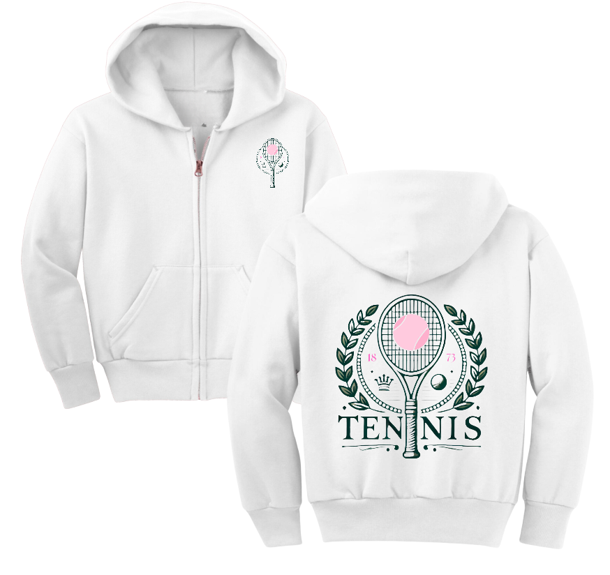 Cozy, Chic, and Ready for Action: The White Zip Up Fleece Hoodie Jacket with custom designed Appliqué on back and front.