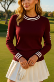Fall in love with your new go-to layer — our super stylish pullover knit that blends sporty flair with everyday chic. Designed with a flattering, easy fit, and sleek stripe detailing on the upper arms and cuffs for that extra pop of personality.