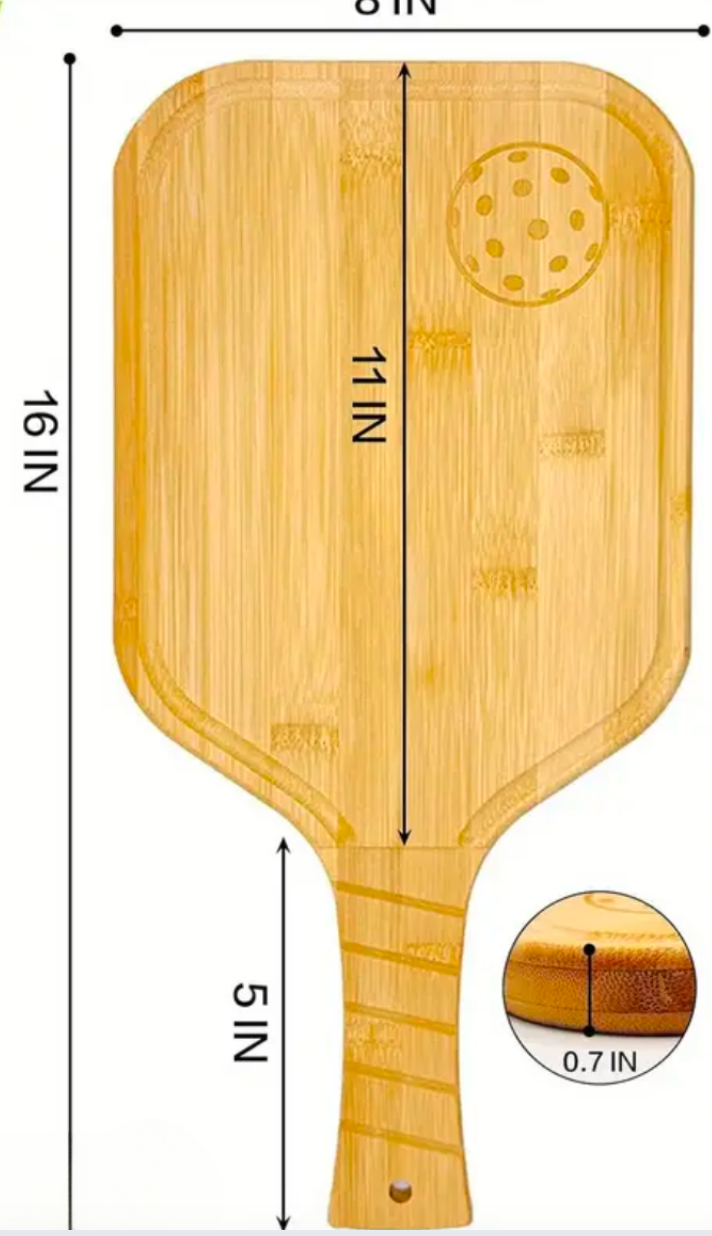 Crafted from eco-friendly bamboo with a sleek 16" x 8" design, this board is as functional as it is fun. A subtle juice groove keeps things tidy, while the playful pickleball motif makes it the perfect centerpiece for your next match-day spread.