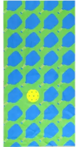 The perfect gift for yourself or any pickleball enthusiast, our new towel features a vibrant blue and green colorway, showcasing a bold graphic of paddles and a ball.