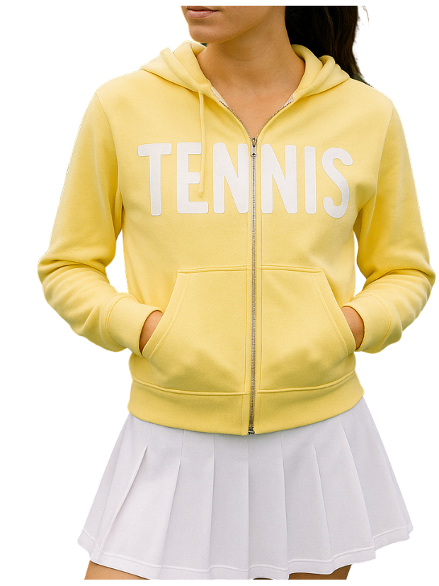 Our custom-designed zip-up hoodie with distressed "TENNIS" lettering is sure to make an impression on and off the court. Made from 100% cotton, this hoodie features a heavy-weight zipper and offers a cozy, comfortable feel. Perfect for warming up before a match or showcasing your love for tennis, it combines style and functionality effortlessly.