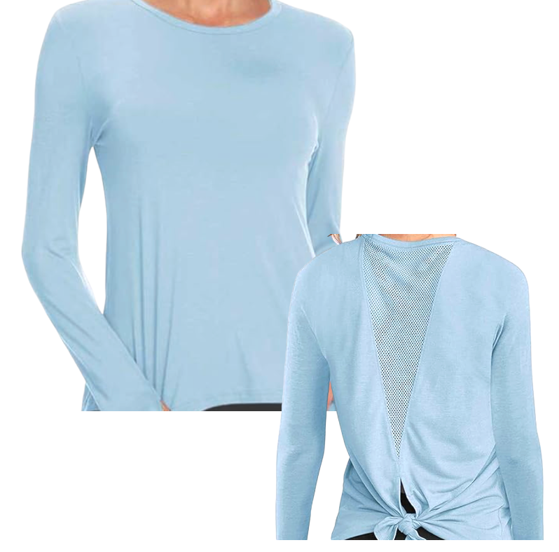 Classic High Neck Mesh Panel Back Long Sleeve - Light Blue