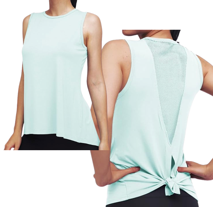 Elevate your activewear with our High Neck Sleeveless Tank, featuring a chic mesh panel back that adds both style and breathability. This versatile tank can be worn loose for a relaxed look or tied in the back for a more fitted silhouette—perfect for any workout or casual outing.