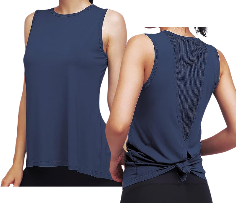 Classic High Neck Mesh Panel Back Tank - Navy Blue