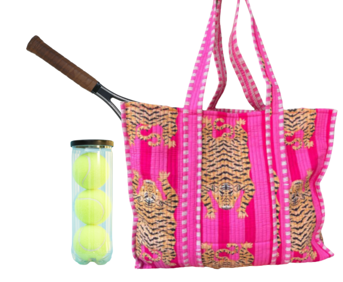 Elevate your game with our Tiger Tote, the stylish alternative to traditional tennis or pickleball bags. Designed to blend functionality with flair, this tote offers ample space for your racquet or paddle, shoes, water bottle, and sunscreen—everything you need for a day on the court.