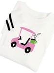 Crafted by RA, this crew neck sweater offers the soft, luxurious feel of your favorite cashmere. Its ribbed trim, striped cuff details, and charming embroidered golf cart effortlessly blend sporty and chic.