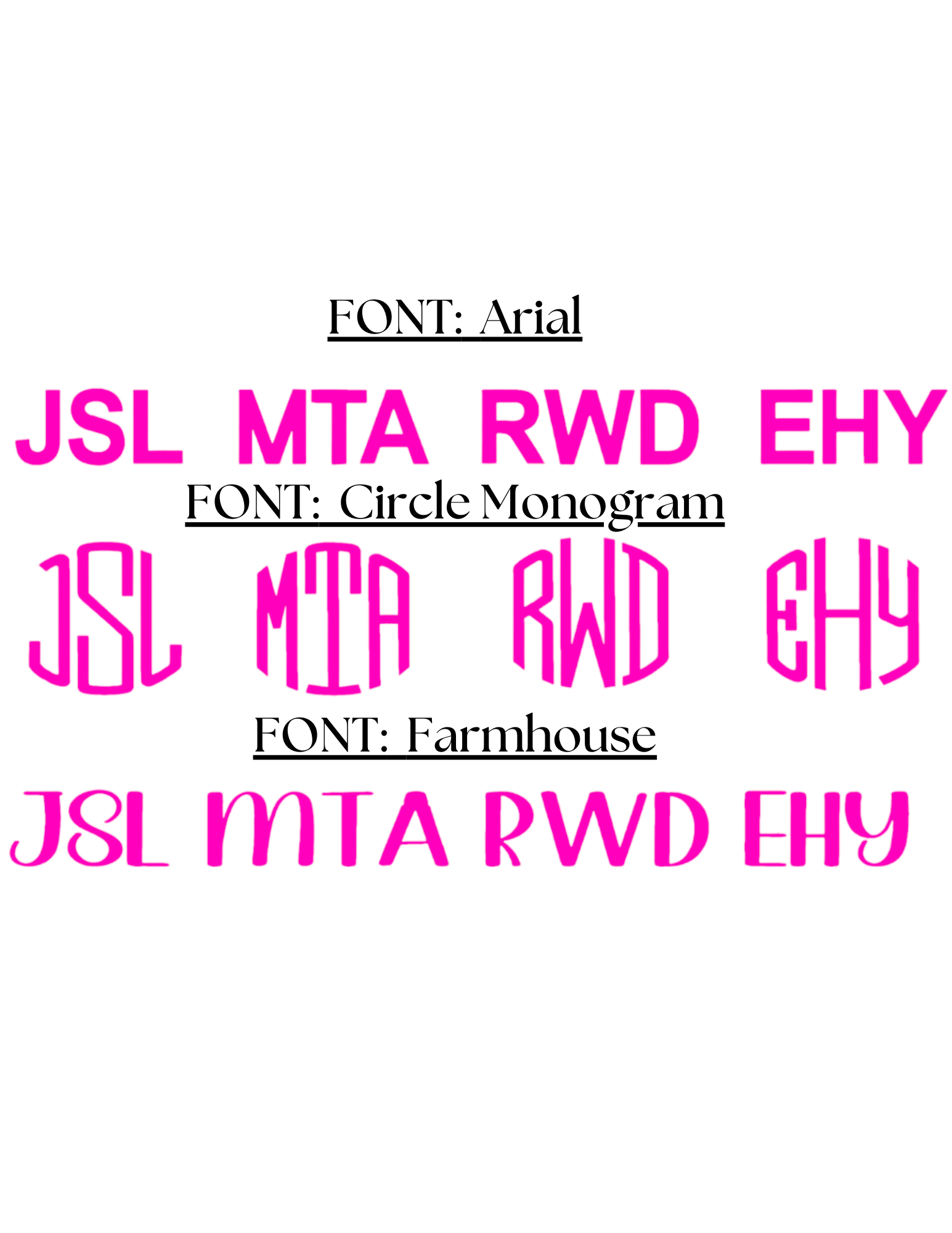 NOTE: For a three-letter monogram, the standard traditional order is First Name Initial, Last Name Initial, Middle Name Initial.