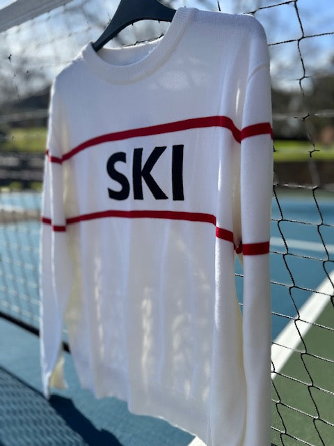 - Design: Eye-catching red and black details on an off-white sweater, ideal for après-ski or casual wear.