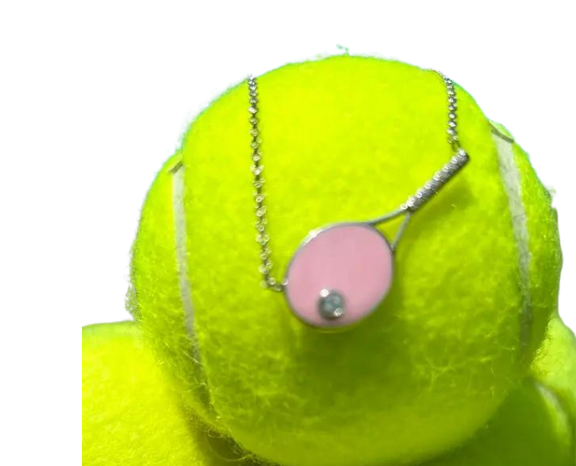 Our Runway Athletics sterling silver enamel tennis racquet necklace is absolutely exquisite! The combination of sterling silver and enamel creates a sophisticated and elegant piece. The addition of cubic zirconia accents on the ball and handle adds just the right amount of sparkle, elevating the overall look. The 18" sterling silver chain ensures it sits beautifully on the neck, making it a stunning choice for any tennis lover who appreciates both style and sport. This necklace is sure to be a cherished accessory!