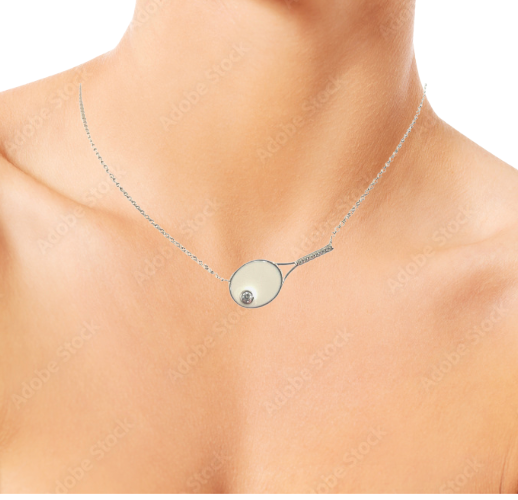 Our Runway Athletics sterling silver enamel tennis racquet necklace is absolutely exquisite! The combination of sterling silver and enamel creates a sophisticated and elegant piece. The addition of cubic zirconia accents on the ball and handle adds just the right amount of sparkle, elevating the overall look. The 18" sterling silver chain ensures it sits beautifully on the neck, making it a stunning choice for any tennis lover who appreciates both style and sport. This necklace is sure to be a cherished accessory!