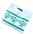 Description: Elevate your tennis style with our Runway Athletics crew neck tennis sweater in cream and green. This sweater combines chic, sporty design with functional elegance, making it a standout piece for showcasing your team spirit. Its versatile look seamlessly transitions from the court to casual outings.