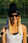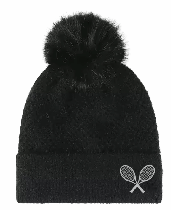 Stay cozy and stylish on the court this winter with the Tennis Pom Pom Beanie with embroidered silver racquets. ! Perfect for tennis players or enthusiasts, this beanie makes a great gift that combines warmth and fun.