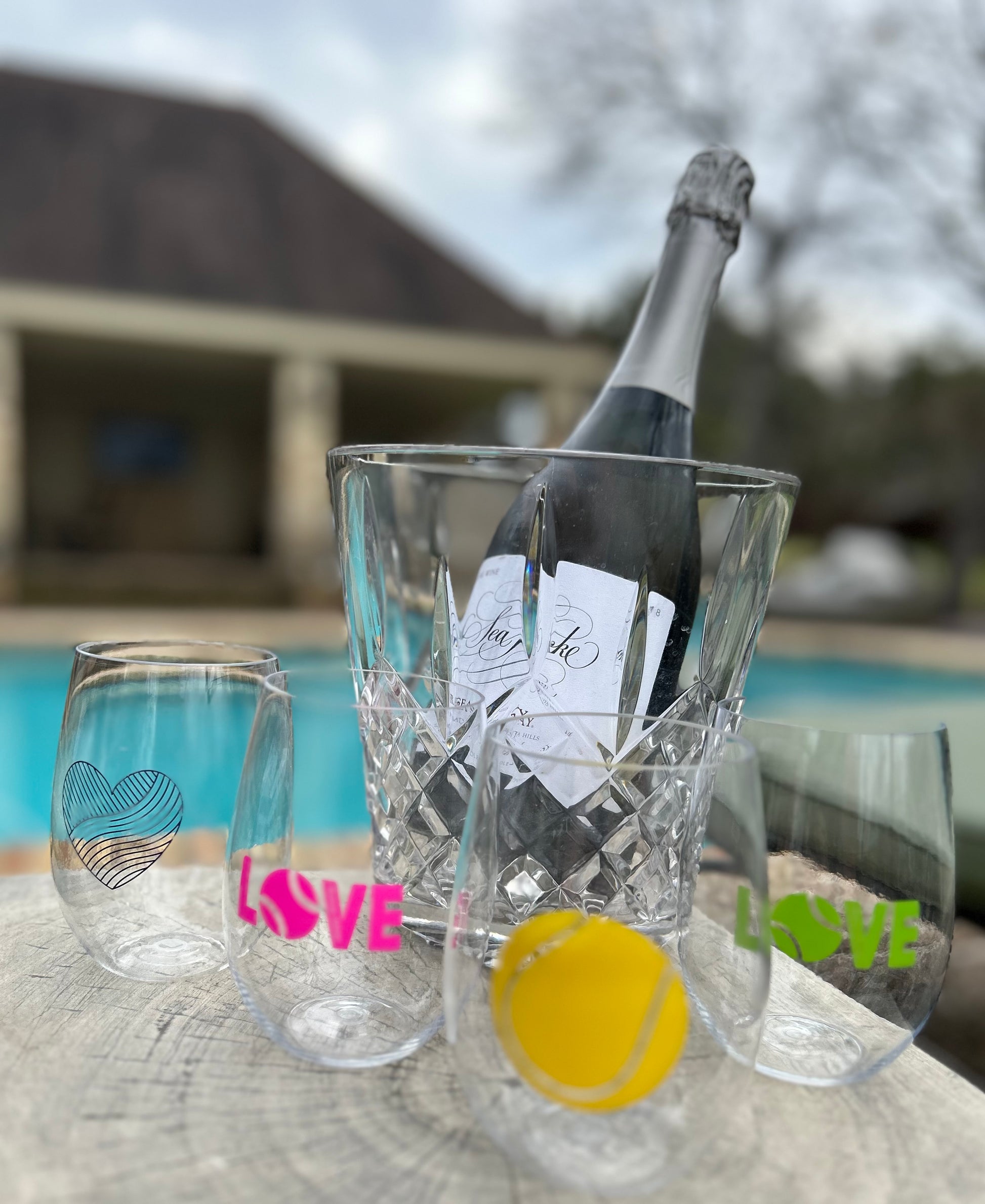 Our Runway-designed Tennis Tumblers arrive boxed and ready for use, whether you're on the court or celebrating your favorite moments. This reusable set of four 16 oz. shatterproof stemless glasses features a unique tennis design on each glass, making them perfect for pre- or post-game cocktails.