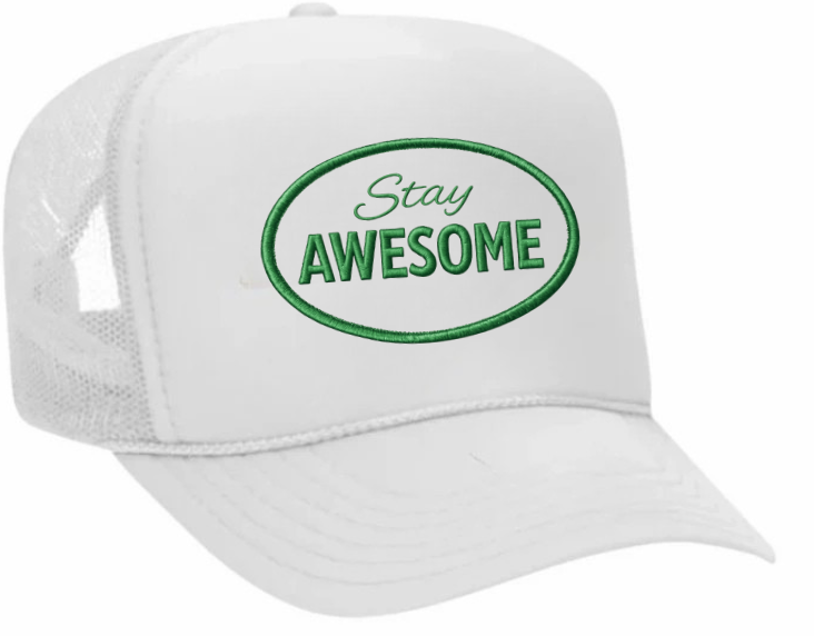 Stay Awesome Trucker Hat - White & Green